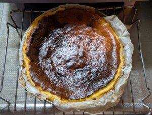 2025/10/05 今日の父の命日だったのにすっかり忘れて気が付いたのが昼でとうとうお参りいかずじまいでした。夕方からバスクケーキを焼きました。このケーキは焼きあがっても冷蔵庫で半日冷やしてから完成となります。明日、差し入れの予定なので喜んで貰えると良いなあと思います。
