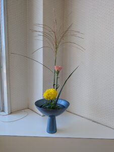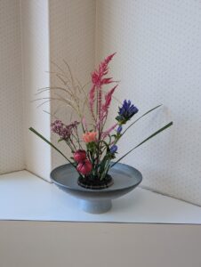 今日は中秋の名月です。今、見事な月を見ることができました。丁度、花材はススキが来ましたので生けました。後はお団子が欲しいところでしょうか?