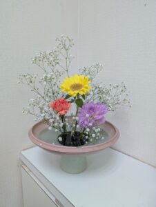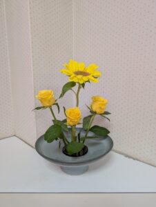 今週は黄色のバラとヒマワリが印象的だったので主役で生けました。