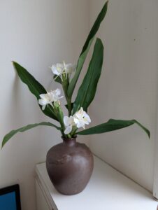 2025/11/17 今日は生け花の日ですが、患者さんから素敵な花を頂きました。ジンジャーリリーです。可憐で素敵ですね。今日は他にも花材が色々あって7鉢も生けましたが、その中で3つ紹介します。明日から冬の模様です。体調を整えてお過ごしください!
